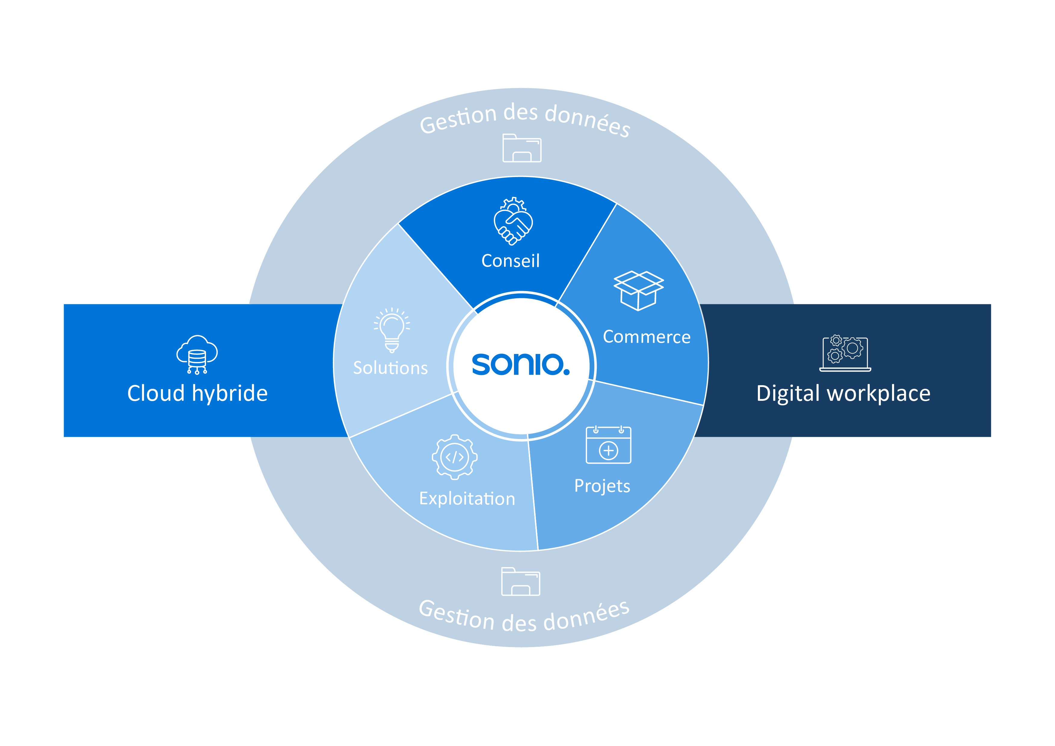 Sonio ne considère pas le lieu de travail numérique comme une discipline technique isolée, mais comme partie intégrante d'une approche globale de service complet.